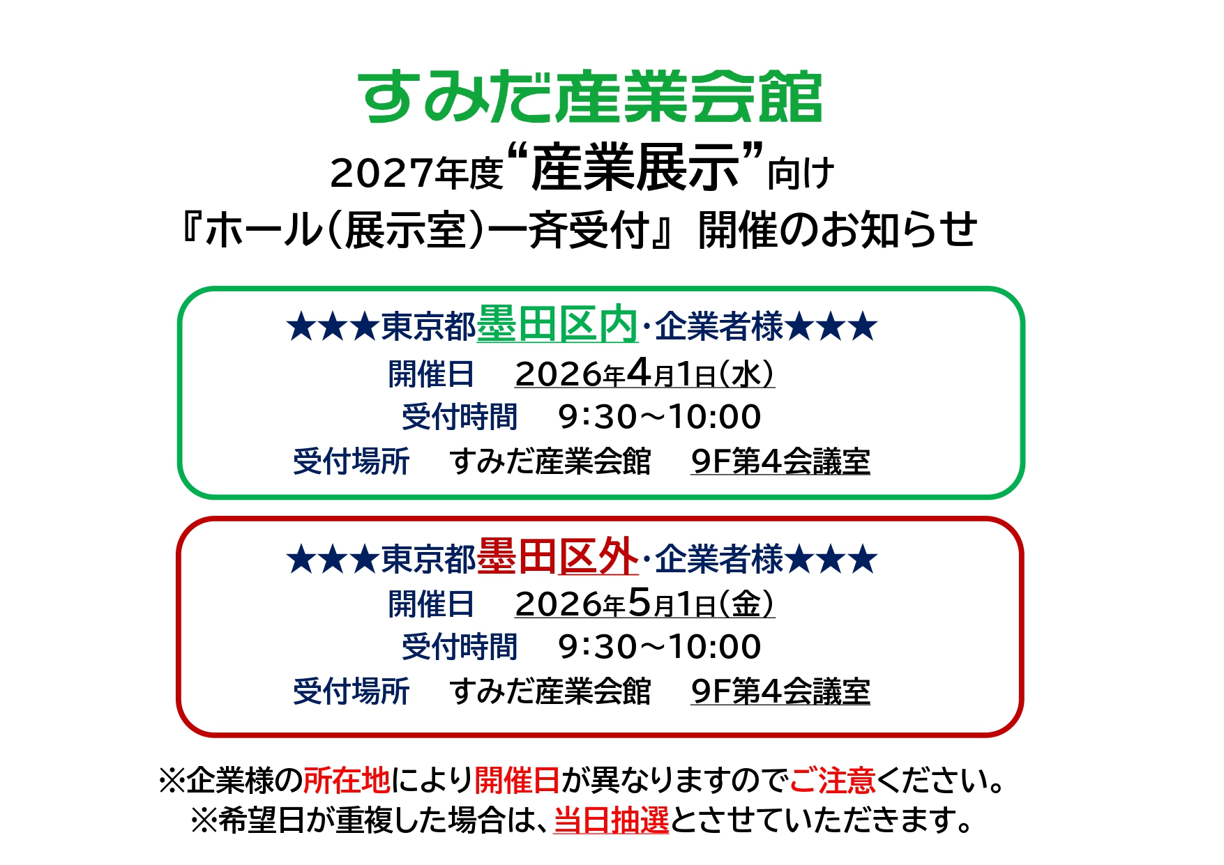 『2027年度産業展示向けホール一斉受付』のお知らせ