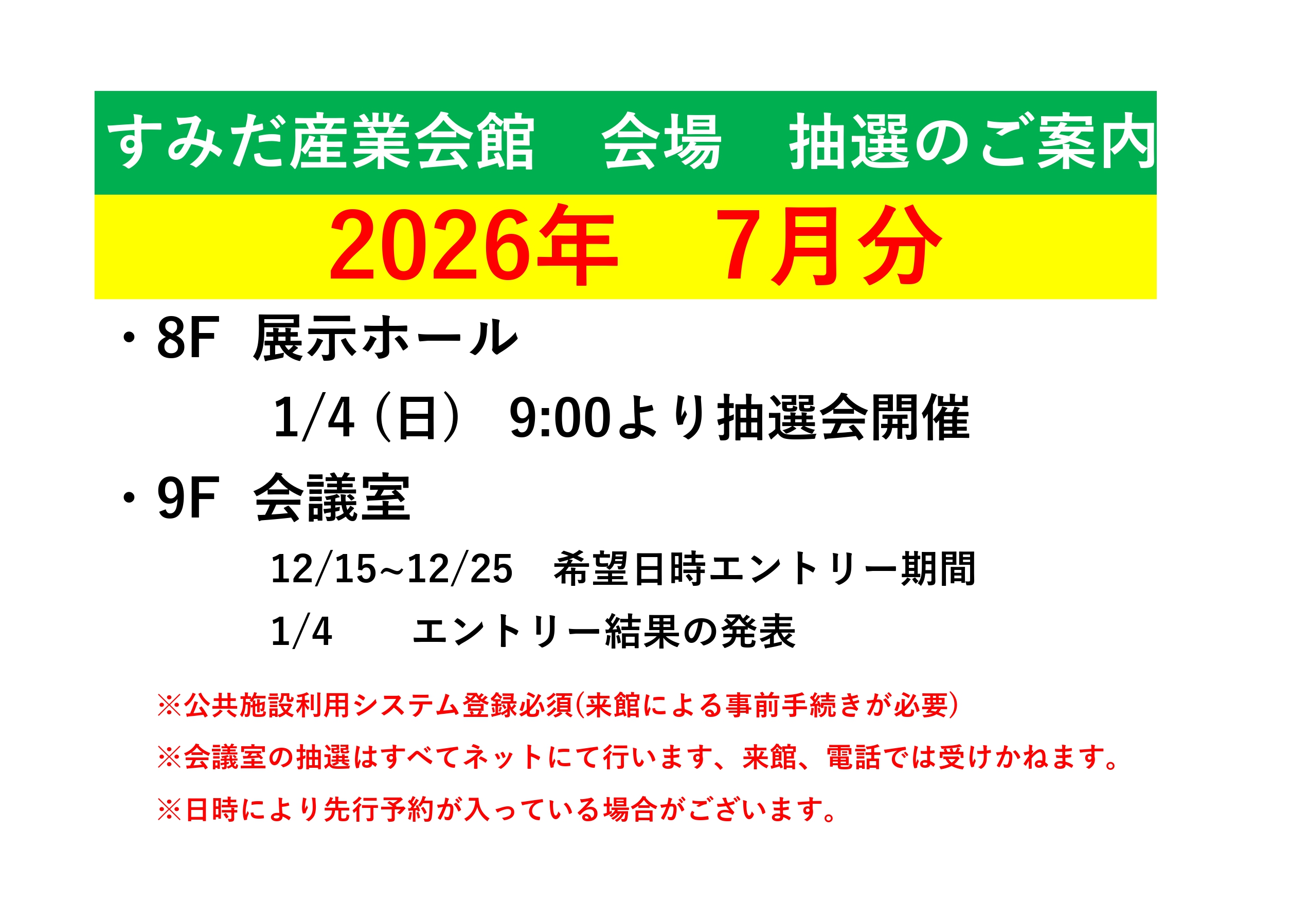 展示ホールにつきましては1月4日(日)に抽選会を行います。